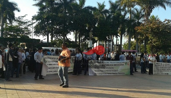 Total rechazo a la Reforma Energética manifestaron los Sindicatos de telefonistas y trabajadores del Nacional Monte de Piedad la tarde del viernes frente a instalaciones del palacio Municipal de Poza Rica, como parte del movimiento ciudadano convocado a nivel nacional, junto con las organizaciones que pertenecen a la UNT y a diferentes partidos.