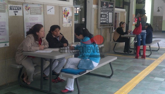 Mientras que en la ESBO 8 se instalaron en el domo de la institución mesas de atención en donde se atienden a los padres de familia de los menores interesados en obtener un lugar en la institución ubicada en el fraccionamiento Palmas.