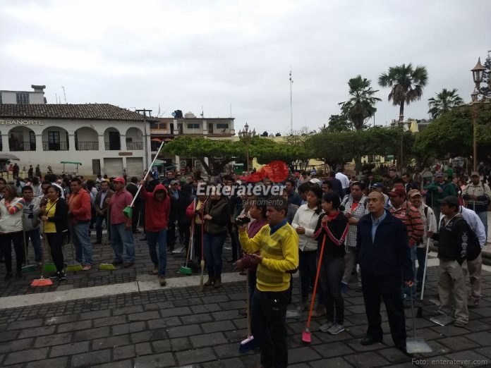 Autoridades municipales de Papantla, dejan oficinas para tomar escobas y recogedores, esto con la finalidad se sumarse a los trabajos de limpieza del primer cuadro de la ciudad, regidores y directores que también colaboraron en estos trabajos de concientización a la población.