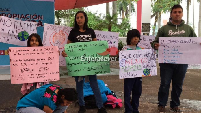 Ciudadanos de Poza Rica realizaron una protesta pacífica en el parque Benito Juárez para generar la concientizan en la población sobre el cambio climático, Irán Pérez Velazco, estudiante de ingeniería ambiental.