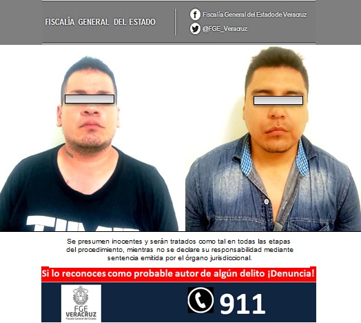 Estos hechos fueron puestos del conocimiento de la autoridad ministerial y de inmediato se implementó un protocolo especializado, mediante el cual fueron detenidos en el momento de efectuar el cobro de dinero los sujetos identificados como Abraham “N” y Carlos Antonio “N”, alias “El Gringo”, de 25 y 33 años de edad, respectivamente.