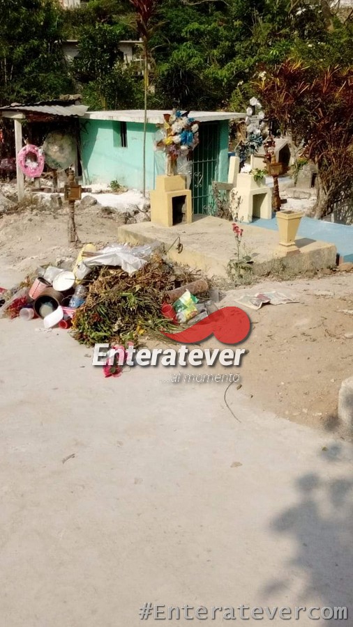 Continúan trabajos de descacharrización en instalaciones de panteón de la Santísima Trinidad en el municipio de Papantla, trabajador de este campo santo así como de limpia pública del ayuntamiento se han sumado a los trabajos.