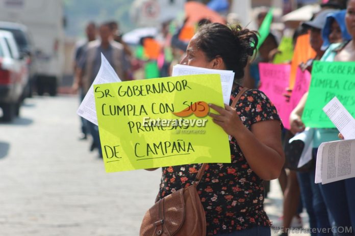 Decenas de personas pertenecientes a éste y otros municipios de la región, se pudieron observar en distintas partes del centro histórico de la ciudad vainillera, dentro de las cartulinas que portaban, pedían que el gobernador del estado cumpliera con las promesas de campaña.