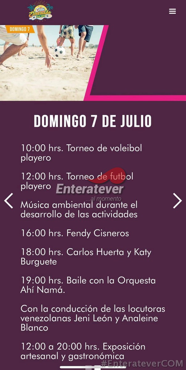 El evento tendrá como fecha los días 6 y 7 de julio en el cual se tienen preparados diferentes eventos de carácter familiar, actividades como torneo de vóleibol, fútbol playero así como exposiciones artesanales y gastronómicas.