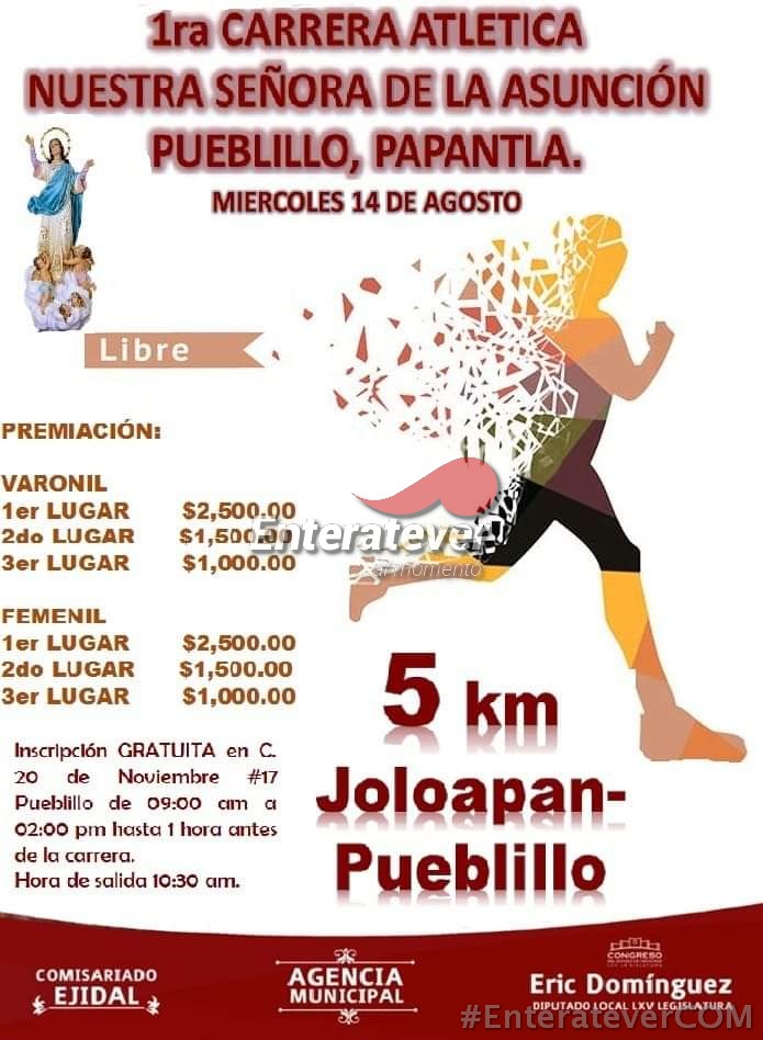 Con motivo de la fiesta patronal de la localidad de Pueblillo en el municipio de Papantla, habitantes lanzan convocatoria para la primer gran carrera atlética en este lugar, donde además se premiará a los tres primeros lugares.