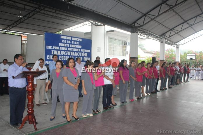 Fue en la escuela María Gutiérrez matutina, donde Mariano Romero González alcalde de Papantla y Octavio Tremari Gaya, secretario del ayuntamiento, fueron invitados para dar por iniciado este nuevo año escolar y quienes de manera simbólica hicieron la entrega de los libros de texto gratuito que serán distribuidos a los alumnos.