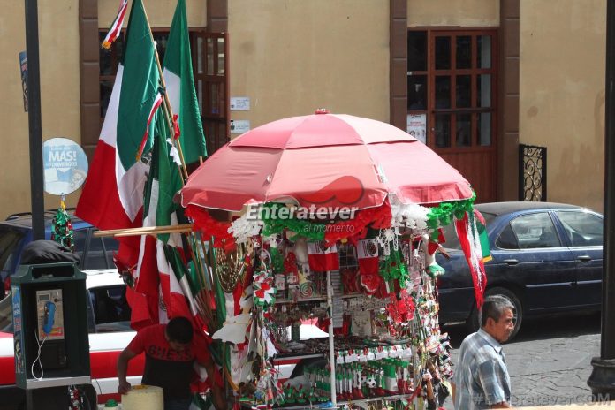 Como cada año por motivo de las fiestas patrias decenas de puestos ambulantes con mercancía de esta fecha recorren calles de Papantla, desde las más pequeñas hasta las más grandes banderas que pueden colgar en casas, autos y azoteas se pueden encontrar en estos puestos.