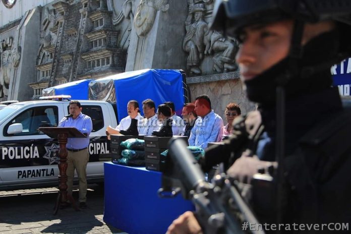 Con una inversión de seis millones de pesos de acuerdo a Mariano Romero González alcalde de Papantla, entregan a policías municipales, patrullas, motocicletas así como uniformes tácticos.
