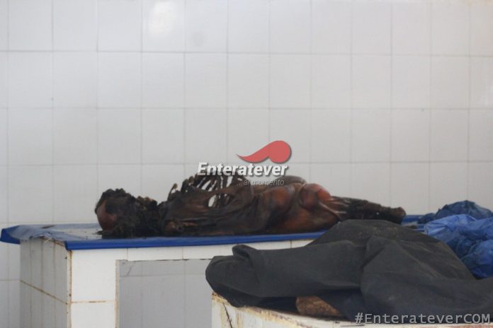 Al llegar al lugar se puede observar el desorden que existe dentro del anfiteatro, más que un lugar para resguardo de los cuerpos no identificado parece una carnicería, además de restos humanos en el suelo hay guantes protectores, botas de hule que fueron usadas.