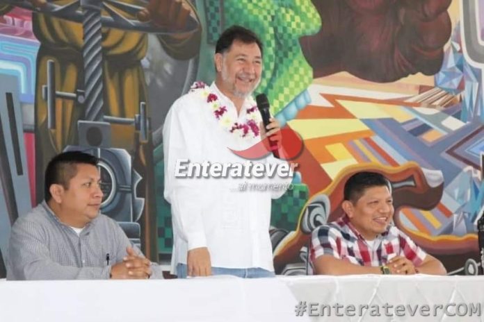 El diputado federal Gerardo Fernández Noroña acompañados de Jaime Humberto Pérez Bernabe, tambien miembro de la LXIV Legislatura del Congreso de la Unión de México, realizan conferencia denominada los Retos de la Cuarta Transformación en Papantla, primeramente Pérez Bernabe explicó que ve a Noroña como la voz del pueblo.