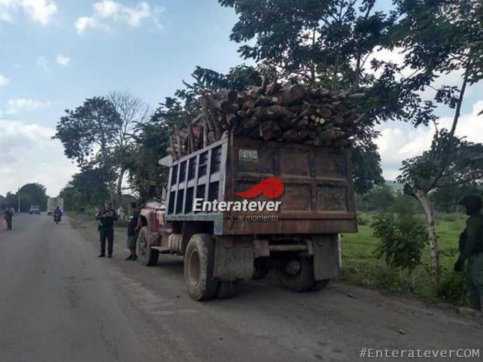 Durante los recorridos que elementos de la Secretaría de Seguridad Pública (SSP) realizan en Papantla, recuperan dos camiones de volteo cargados con madera la cual los conductores de las unidades no pudieron acreditar la procedencia legal del cargamento.
