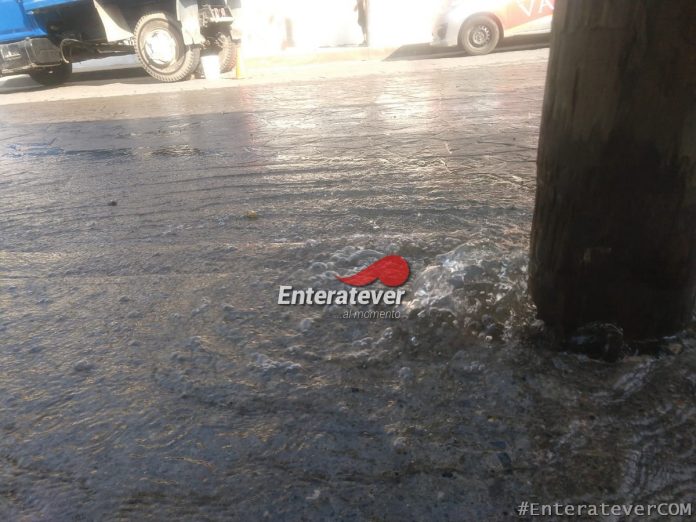 Habitantes cercanos afirman que desde las nueve de la noche del día lunes comenzó a regarse el vital líquido mismo que recorrió por lo menos 800 metros hasta cerca del centro, fue hasta la mañana del día de hoy martes que personal de la CAEV acudió para reparar la tubería.