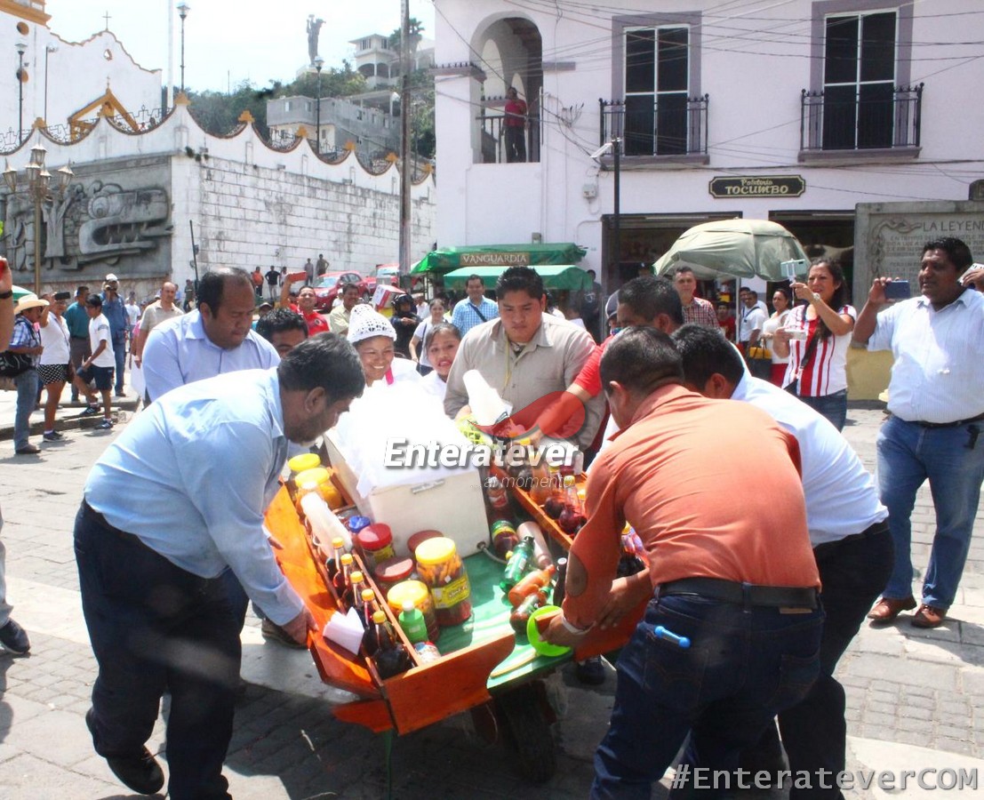 Durante unos minutos de palabreos la vendedora se negó a quitarse y poder seguir vendiendo de lo que diariamente vive pero desafortunadamente alrededor de 8 hombres a la fuerza desalojaron a la vendedora dañando su carro así como utensilios que utiliza para elaborar y llevar los alimentos a su hogar.