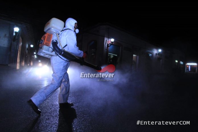 El personal encargado en realizar esta actividad portaba trajes especiales, recorrieron diversas calles para la colocación del líquido sanitizante en banquetas, paredes, cortinas y calles, mientras que los carros que se encontraban de igual forma fueron rociados.