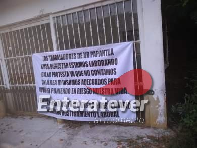 Papantla, Veracruz.- De la misma manera en la que en ocasiones anteriores se han colocado las lonas de inconformidad, trabajadores del hospital IMSS Bienestar de Papantla de manera anónima colocan una lona solicitando a las autoridades tomar cartas en el asunto pues este nosocomio trabaja sin el debido equipo, pues temen contagiarse de Covid-19.
