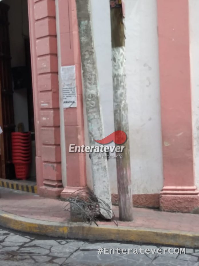 En distintas calles del municipio de Papantla se pueden observar postes de luz con problemas así como los que están a punto de colapsar, tal es el caso del que se encuentra en la calle Aquiles Serdán esquina con 5 de Mayo en zona centro y que amenaza con caer.
