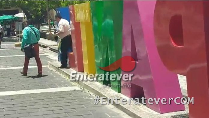 Papantla, Veracruz.- Aprovechando que los policías de Papantla se encuentran pajareando, deambulando y echando novio por las calles del centro histórico, turistas que arriban a esta esta ciudad, violan áreas perimetreadas del parque Israel C. Tellez para tomarse una foto en las letras conmemorativas.