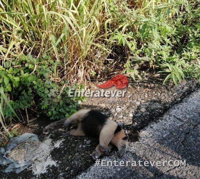Papantla, Veracruz. – A 200 metros de llegar a la localidad del Chote en el municipio de Papantla, durante este día viernes 14 de agosto fue encontrado un ejemplar de un Oso Hormiguero, mismo que fue hallado por conductores quienes aseguran estaba aún lado de la carpeta asfáltica