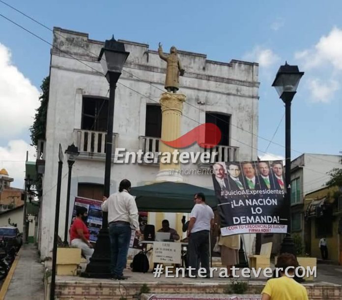 Teniendo como espacio el monumento a Miguel Hidalgo y Costilla en Papantla fue que un grupo de ciudadanos papantecos se solidarizaron con la campaña de recolecta de firmas para realizar juicios a ex presidentes y en la cual durante este fin de semana estuvieron instalados en dicho lugar.