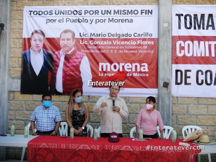 Poza Rica, Veracruz.- Durante la gira de trabajo de Gonzalo Vicencio Flores, Secretario General con funciones de dirigente estatal de Morena por la zona norte del estado acudió al municipio de Coatzintla para la inauguración de las oficinas de enlace en donde también se realizó el protocolo de toma de protesta a los 44 comités municipales.