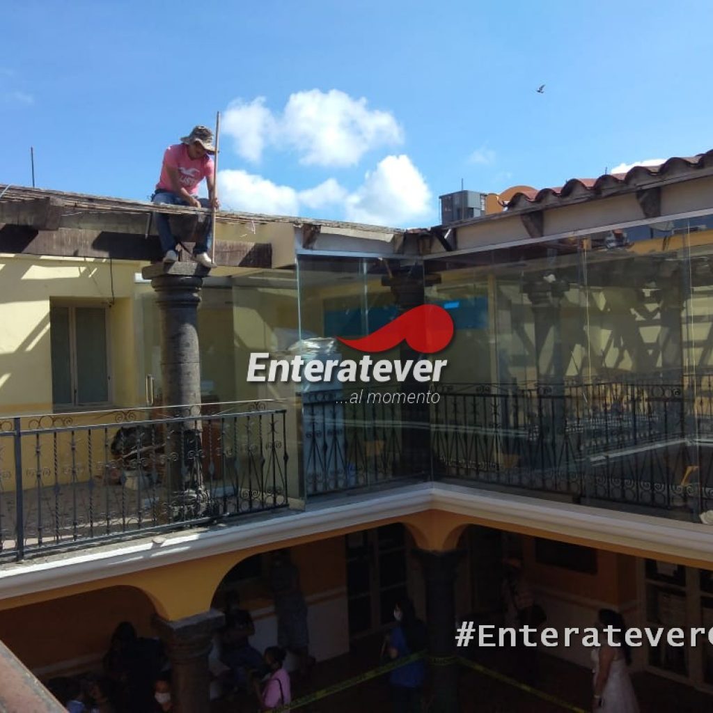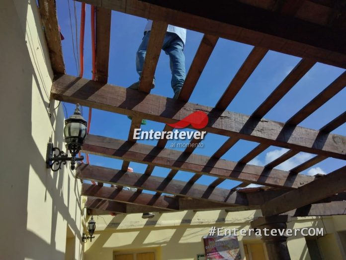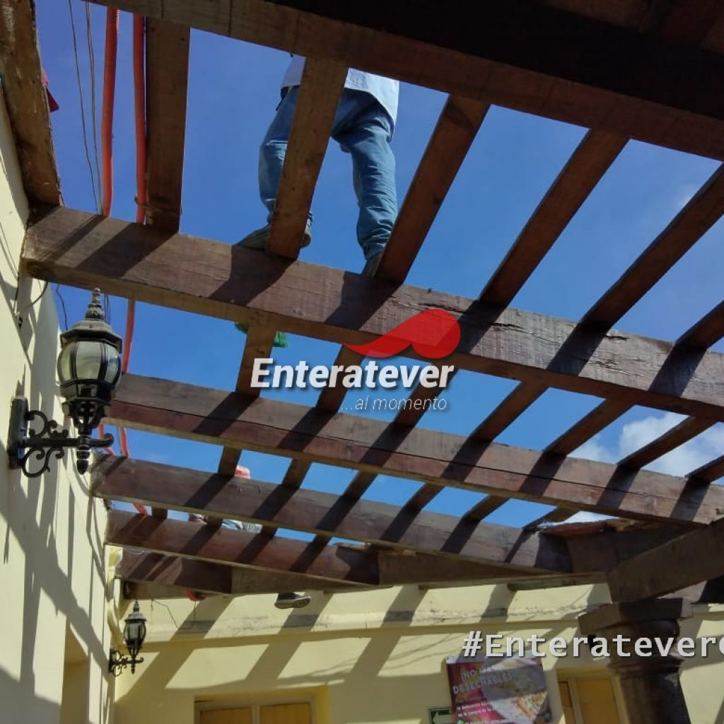 Papantla, Veracruz.- Luego de que comenzarán los trabajos de pintado en las instalaciones del ayuntamiento municipal, el techado de algunas zonas de este lugar también reciben mantenimiento, cambio de vigas y tejas son las que se realizan.