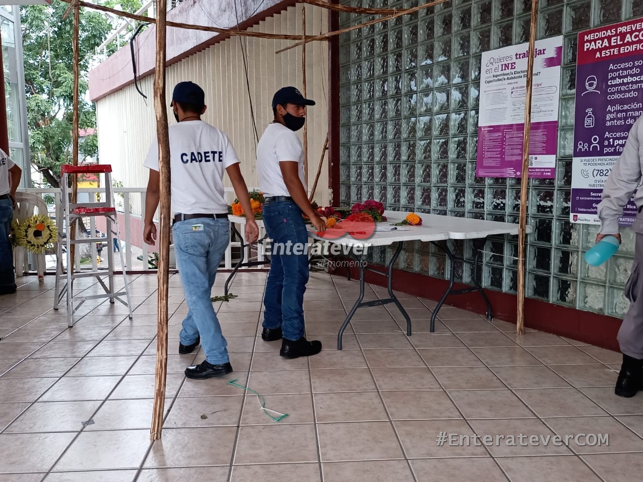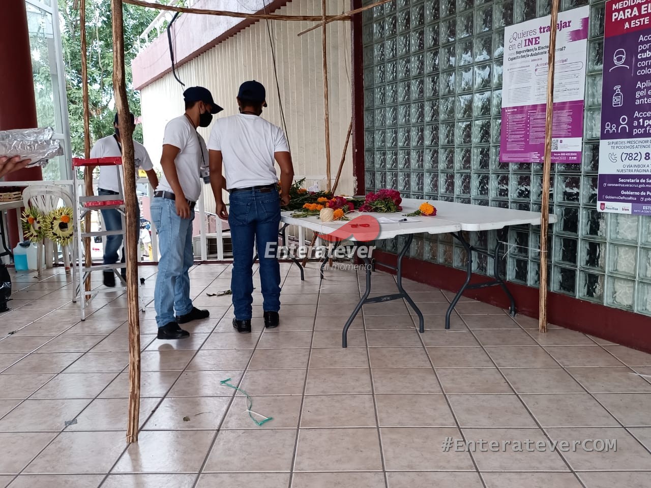 En el lugar se encontraban un aproximado de seis cadetes los que se encontraban en el palacio municipal apoyando a la construcción del altar, en donde también estuvieron presentes algunos trabajadores de confianza y algunos de sindicalizados que acuden en apoyo de las autoridades a pesar de que el sindicato solicitó que todos los trabajadores fueran retirados para evitar poner en riesgo su integridad ante la pandemia.