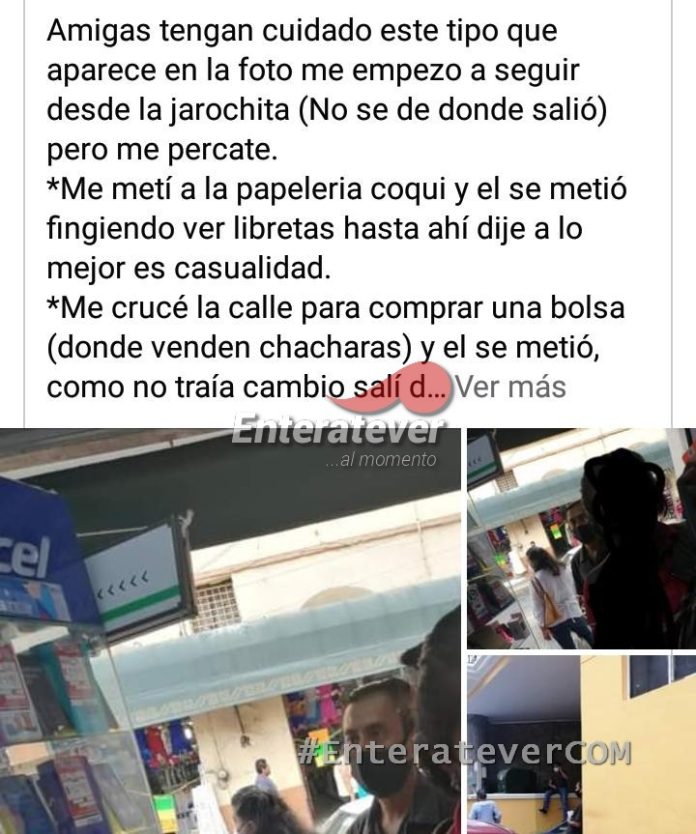 «Amigas tengan cuidado este tipo que aparece en la foto me empezo a seguir desde la jarochita (No se de donde salió) pero me percate, me metí a la papeleria coqui y el se metió fingiendo ver libretas hasta ahí dije a lo mejor es casualidad.