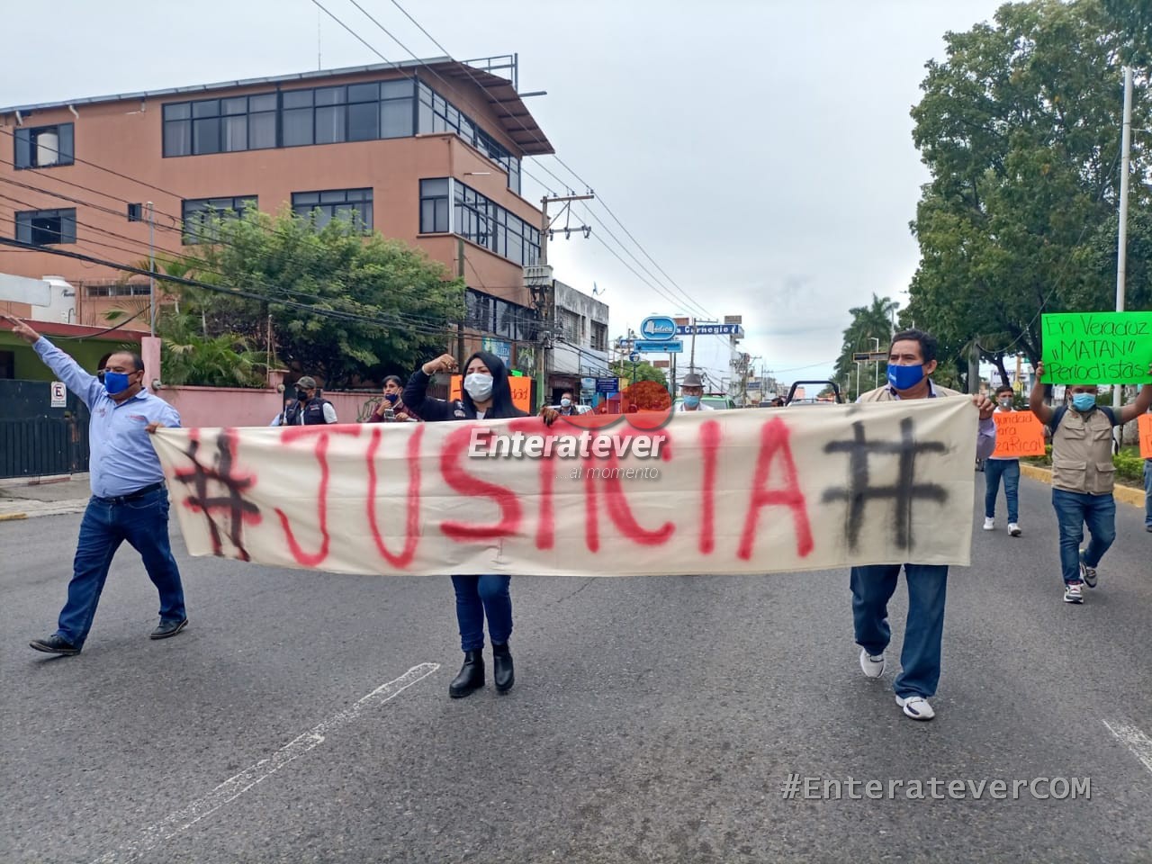 Con pancartas con mensajes de justicia, «En Veracruz matan a periodistas», » No más impunidad», pidiendo la intervención de las diputadas para que también tomarán cartas en el asunto y crear estrategias para protegerlos a los comunicadores, durante la marcha hicieron un minuto de silencio por aquellos a los que les arrebataron la vida.