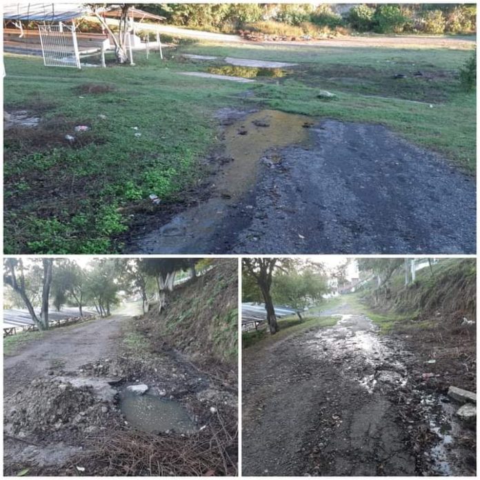 Papantla, Veracruz.- Debido a que el olor es insoportable lo que genera poca higiene así como un foco de infección para gente que acude para actividades al aire libre, deportistas señalan fuga de drenaje en Campo Anáhuac de Papantla, se quejan por fuga de aguas negras en este lugar