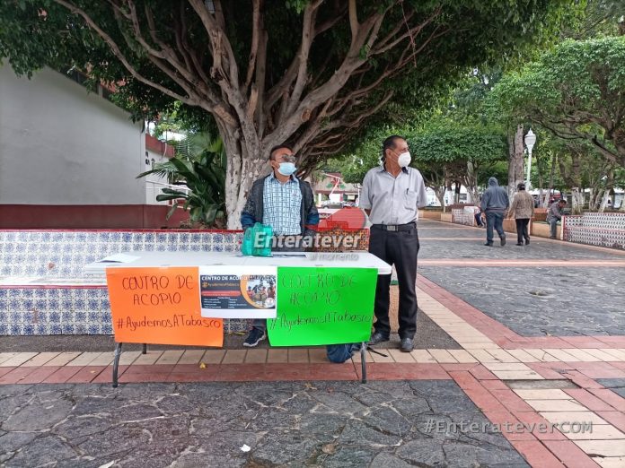 Integrantes de Antorcha Campesina instalaron un centro de acopio en el parque Benito Juárez, esto con el objetivo de recolectar la mayor cantidad de víveres y así poderlos enviar a los municipios de Tabasco que se han visto afectados debido a las inundaciones registradas en los últimos meses.