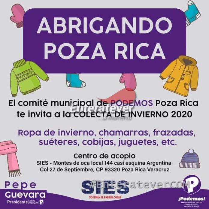 Con el objetivo de poder otorgar ropa de invierno a personas de escasos recursos, integrantes del partido político Podemos iniciaron una campaña de re recolección de estos artículos que durante esta temporada invernal son fundamentales debidos a las bajas temperaturas que se están registrando en el municipio.