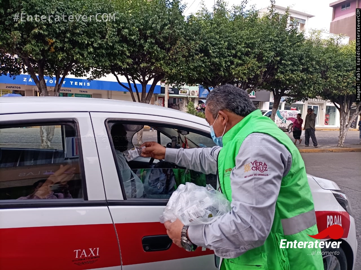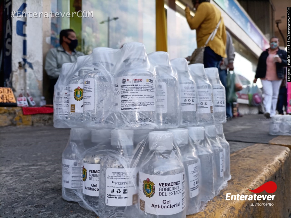 Sesver entrega gel antibacterial en el primer cuadro de la ciudad