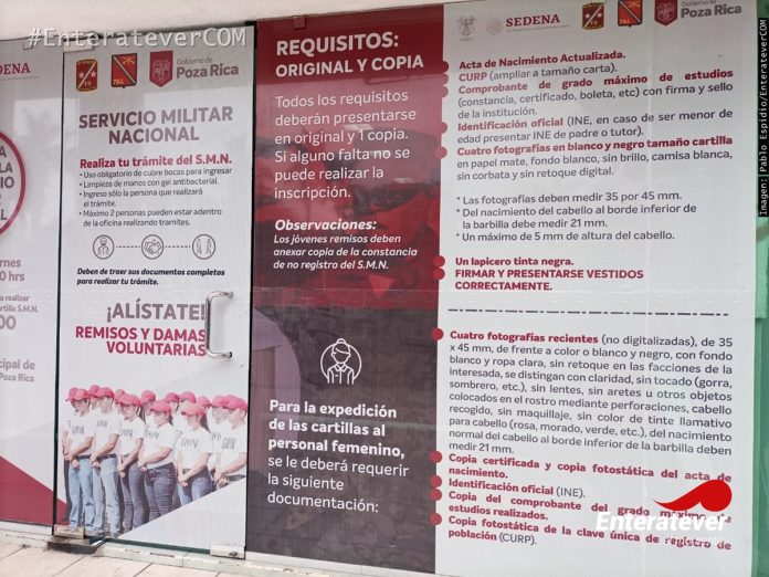 Poza Rica, Veracruz.- Inicia la campaña de reclutamiento de jóvenes pertenecientes a la clase 2003 y remisos para que acudan a la oficina de la Junta Municipal de Reclutamiento de este municipio, para que comiencen con el proceso para tramitar su cartilla militar así lo dio a conocer Evelia Reyes Hernández, Titular de la Junta Municipal de Reclutamiento.