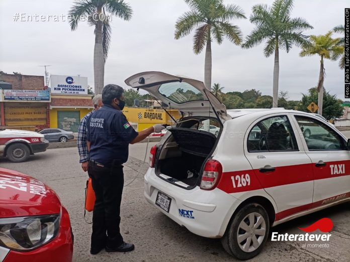 Transporte Público sanitiza taxis de Poza Rica