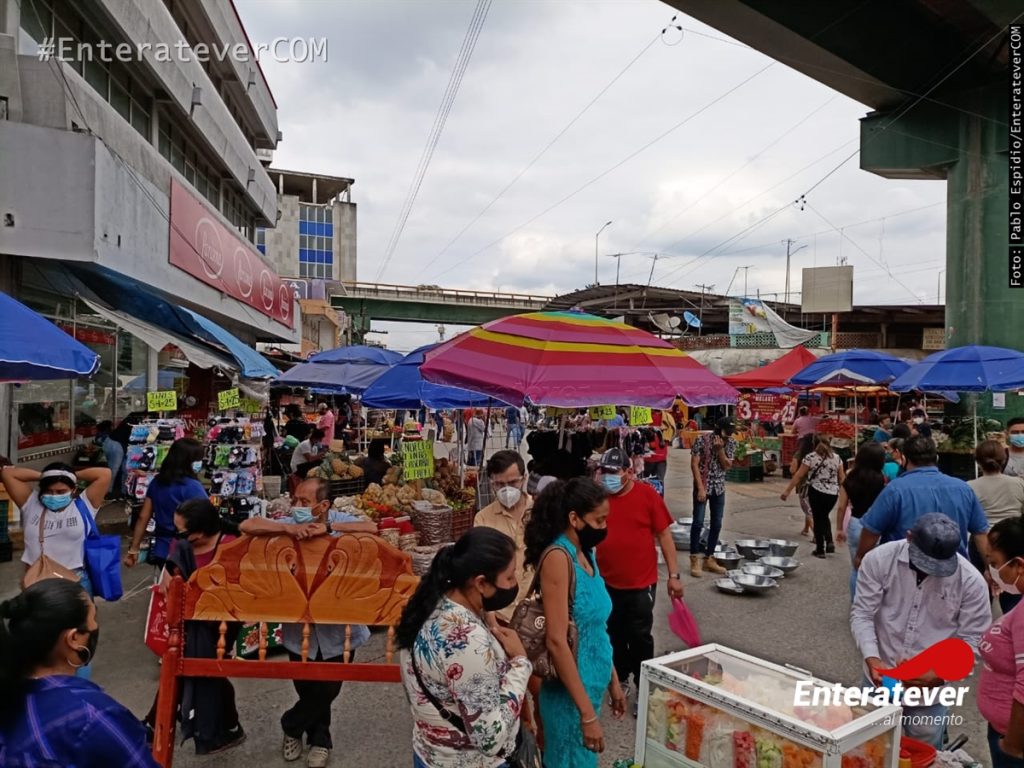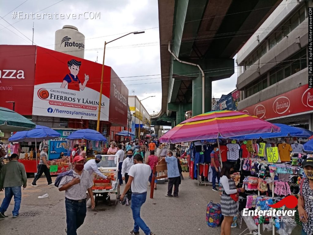 Poza Rica, Veracruz.- Desde temprana hora cientos de comerciantes ambulantes regresaron al primer cuadro de la ciudad, esto a pesar de que el municipio se encuentra en semáforo rojo, pues este lunes se terminaran los cuatro días que el gobernador solicitó que se paralizaran las actividades al alto muero de caso positivos de Covid-19.