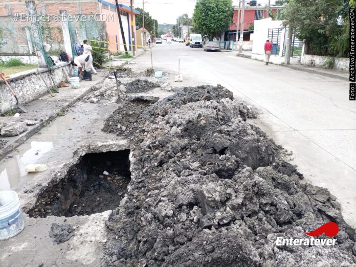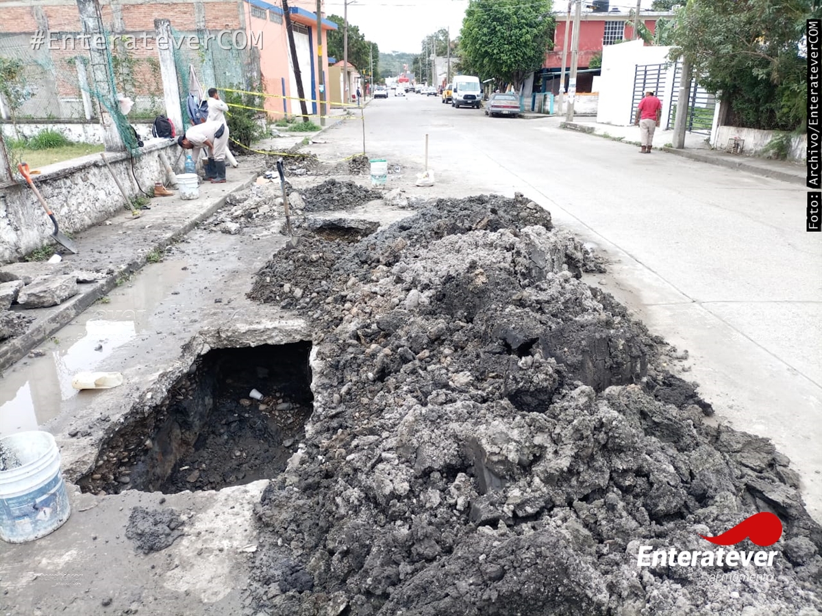 Vecinos de la calle Pozo 2 de la colonia División de Oriente se quejaron del socavón que se ha registrado en esta colonia debido a que el personal de la Comisión del Agua del Estado de Veracruz (CAEV) dejara los trabajos a medias de la reparación de la tubería, por lo que señalan que tiene más de una semana así.