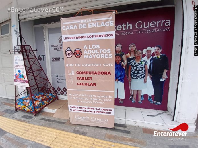 A pesar de que está prohibido lucrar con las vacunas y con la inscripción para recibir la vacuna anti Covid los morenistas están haciendo todo lo contrario, pues la actual diputada plurinominal por el V distrito, Lizeth Guerra Méndez colocó una lona en su casa de enlace para apoyar a las personas de la tercera edad que aún siguen sin inscribirse y así ser contemplados.