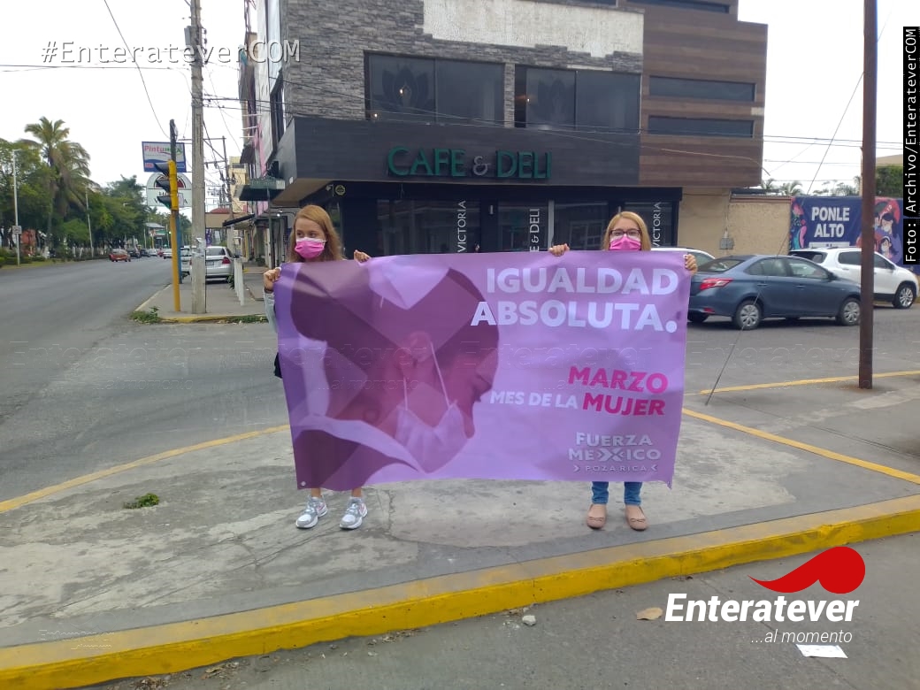 Poza Rica, Veracruz.- Integrantes del partido Fuerza México salieron a las calles y con lonas hicieron un llamado a las autoridades para exigir igualdad absoluta, respeto a sus ideas a las niñas y al igual mostraron una manta con el mensaje “Queremos vivir en Paz y Armonía , somos valiosas” fue como las mujeres de este partido se manifestaron de manera pacífica.