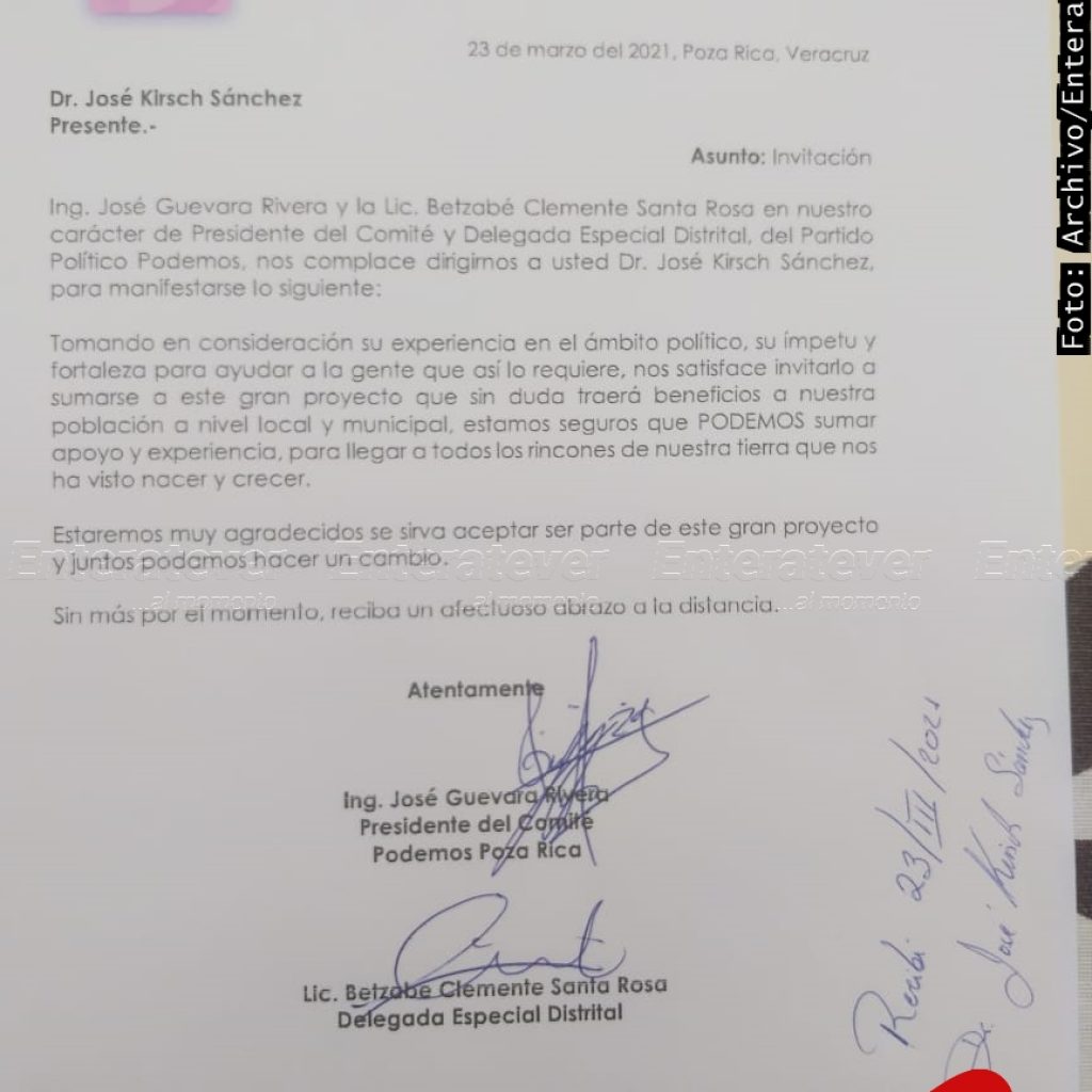 A través de un documento, los jóvenes José Guevara Rivera y Betzabé Clemente Santa Rosa como presidente del comité directivo municipal y delegada especial distrital respectivamente, invitaron a Pepe Kirsch a sumar esfuerzos, talento y experiencias para lograr un verdadero cambio y crear beneficios más a la población.