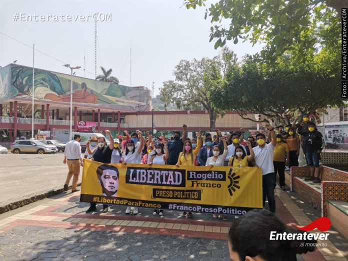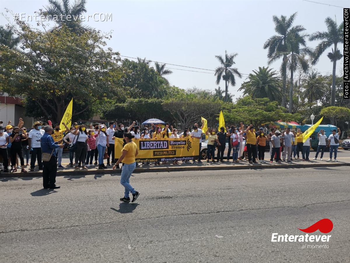 Militancia del Partido de la Revolución Democrática (PRD) se volvieron a manifestar para seguir exigiendo la liberación de Rogelio Franco Castán, esto luego e que se le dictará ocho meses de prisión, por el presunto delito de ultraje de autoridad, en el momento de su captura, por lo que aseguran que es una guerra sucia encontrar del aspirante a la diputación federal.