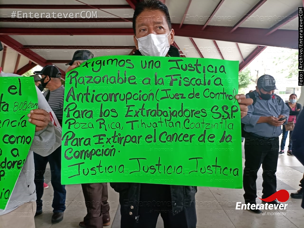 Poza Rica, Veracruz.- Ex policías intermunicipales exigen a la Fiscalía Anticorrupción, el juez de control y quién lleva el caso para que liberen los fallos a favor ya que se ha comprobado que existen las pruebas necesarias para comprobar que hubo personas que falsificaron las firmas de los ex elementos de seguridad.