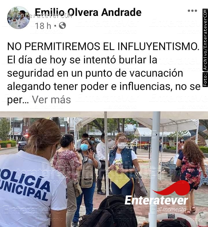 A través de redes sociales el delegado regional posteó una publicación en donde señaló que no estarán permitiendo el influyentísimo, reiteró que todas las personas recibirán su vacuna y que todas valen lo mismo, por lo que la persona a pesar de que ya se encontraba en el domo de la Plaza Cívica 18 de marzo fue sacada para que hiciera fila como los demás ciudadanos que llegaron desde temprana hora para recibir su vacuna.