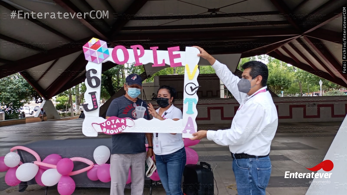 Poza Rica, Veracruz.- A fin de promover el voto seguro, el Organismo Público Local Electoral (Ople) instaló un módulo en la pérgola del parque Benito Juárez, para hacer la invitación a la ciudadanía a que el próximo seis de junio acudan a la casilla para ejercer su derecho al voto.