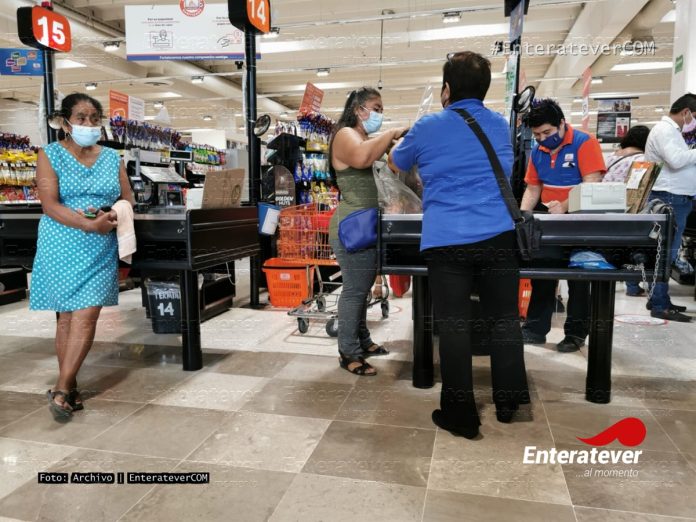 Poza Rica, Veracruz.- Personas de la tercera edad regresan a trabajar como empacadores en los supermercados, esto a pesar de que se ha registrado un incremento considerable de casos de covid-19 en la ciudad, situación que más de algún ciudadano ha sorprendido ya que debido a la pandemia los habían retirado.
