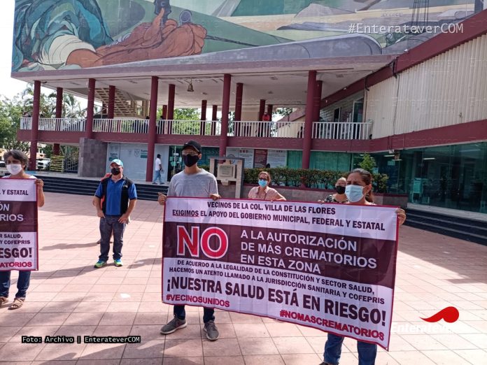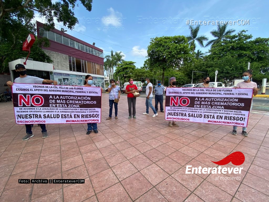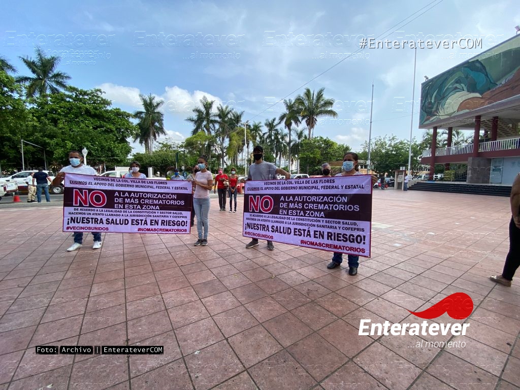 Vecinos de la colonia Villa de las Flores, se manifestaron en la explanada del ayuntamiento de Poza Rica, debido a que en la colonia Villa de las Flores quieren colocar un velatorio/crematorio que quieren poner a menos de 300 maestros de distancia, situación por la cual vecinos de encuentran inconformes.