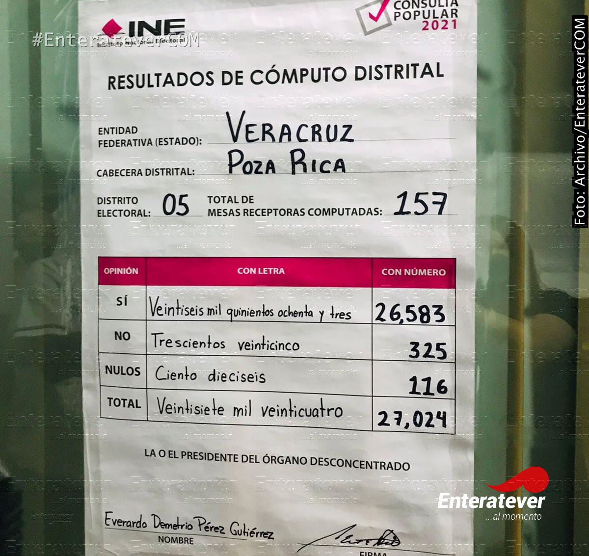 De acuerdo con Everardo Demetrio Pérez Gutiérrez, Presidente de la 05 Junta Distrital del Instituto Nacional Electoral (INE) dio a conocer que 27 mil 24 personas fueron las que salieron a votar en este distrito, de los cuales 26 mil 583 votaron a favor, 325 votaron en contra y 116 anularon su voto.