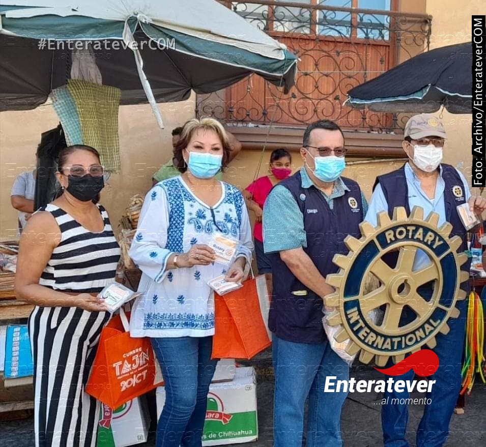 Durante este día martes 17 de agosto integrantes del Club Rotario de Papantla, realizaron en el centro de esta ciudad la dotación de cubrebocas, esto para aquellas personas que pasaban por el lugar.