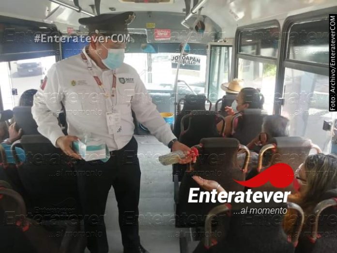 Luego de que comenzarán las restricciones por la tercer oleada de Covid 19, en Papantla, el personal de transporte público continúa realizando operativos.