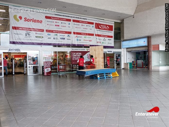 Los empleados protegieron las fachadas y accesos a las diferentes tiendas departamentales, las cuales a pesar de que la alerta gris se emitió el pasado martes tiendas departamentales protegieron sus instalaciones hasta este viernes se sabe que el huracán podría impactar en el municipio durante la noche de este viernes o las primeras horas del sábado.