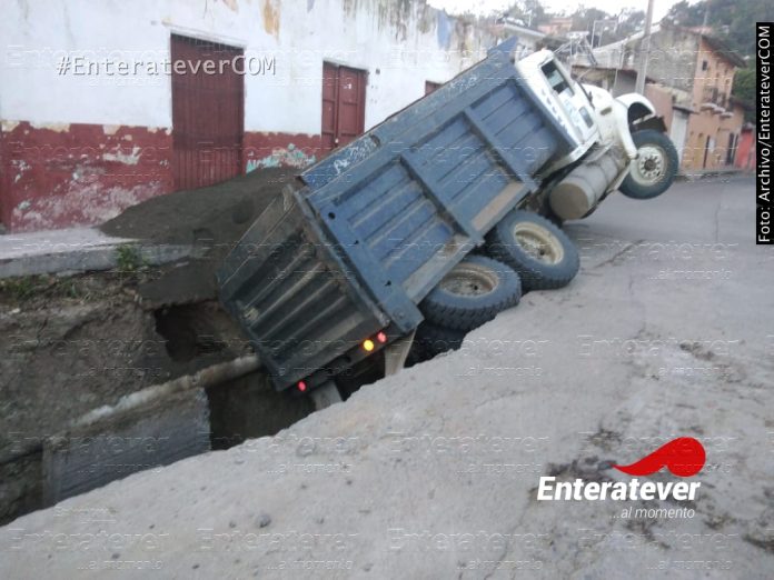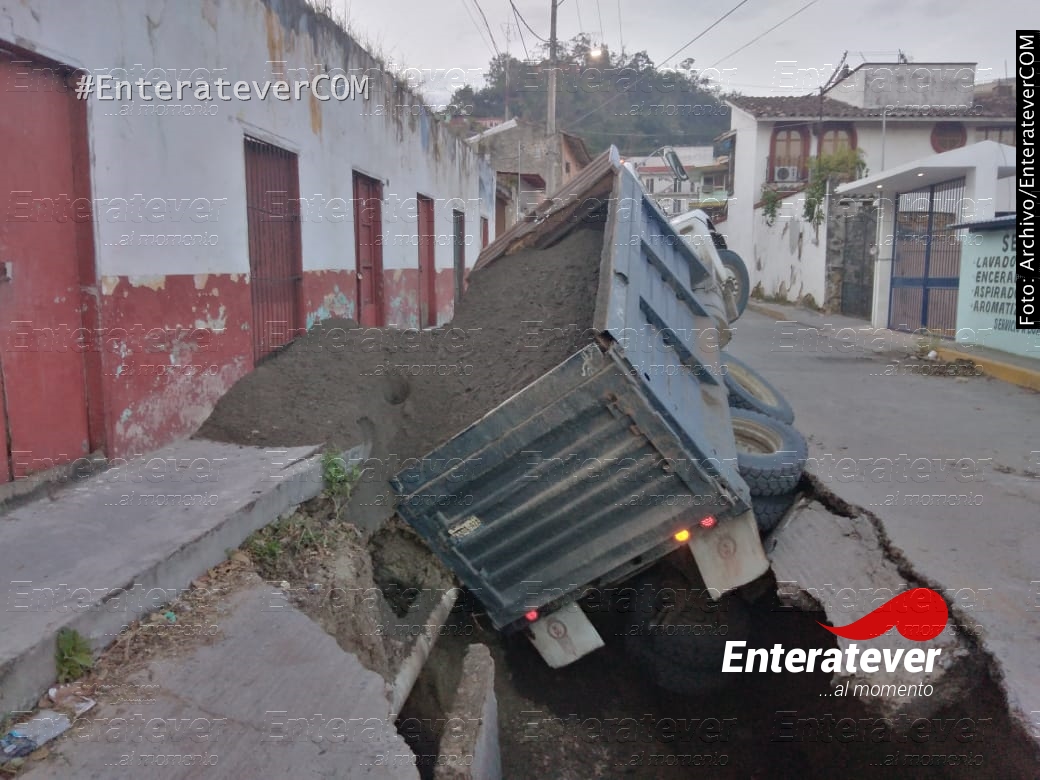 El camión al transitar por este lugar, llevan consigo una carga de arena lo cual hizo más presión en el peso que debía aguantar la calle y la fracturó por completo